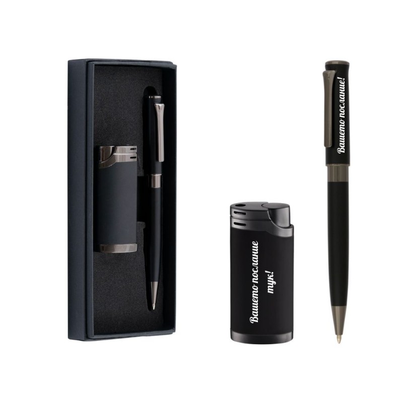 Гравиран Комплект запалка и химикалка в подаръчна кутия