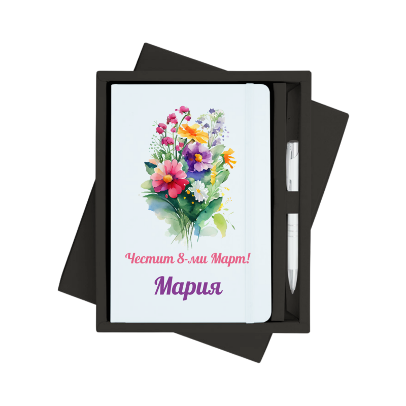 - Персонализиран тефтер за 8-ми Март с метална химикалка в кутия