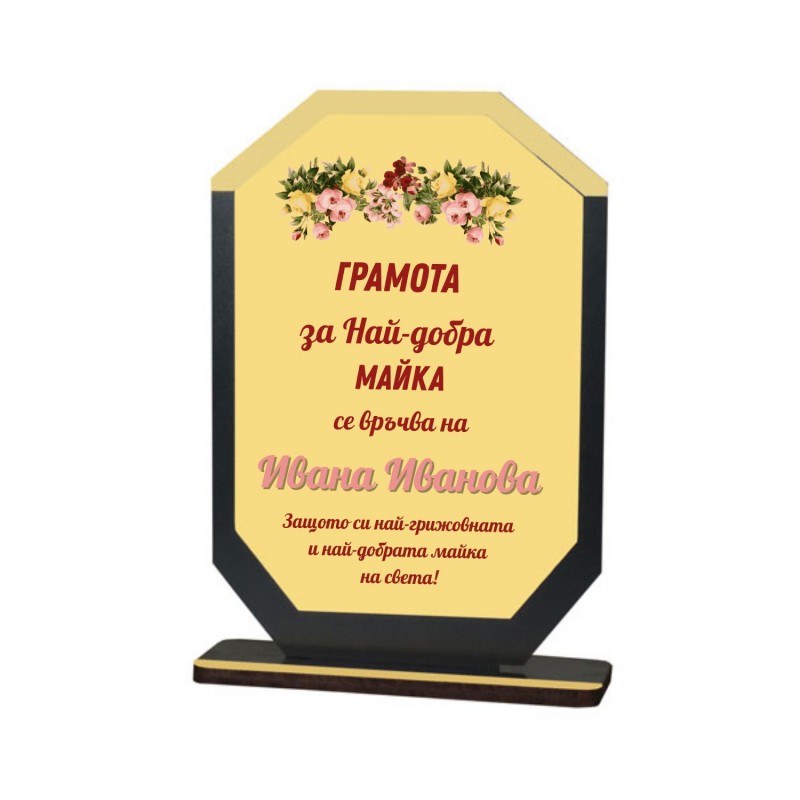 Персонализиран плакет Материал: дърво MDF и метал;Размер на артикула: 13x17.5x5 см.Дебелин..