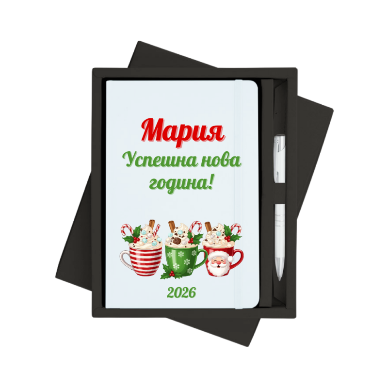 Персонализиран тефтер за Коледа с метална химикалка в кутия