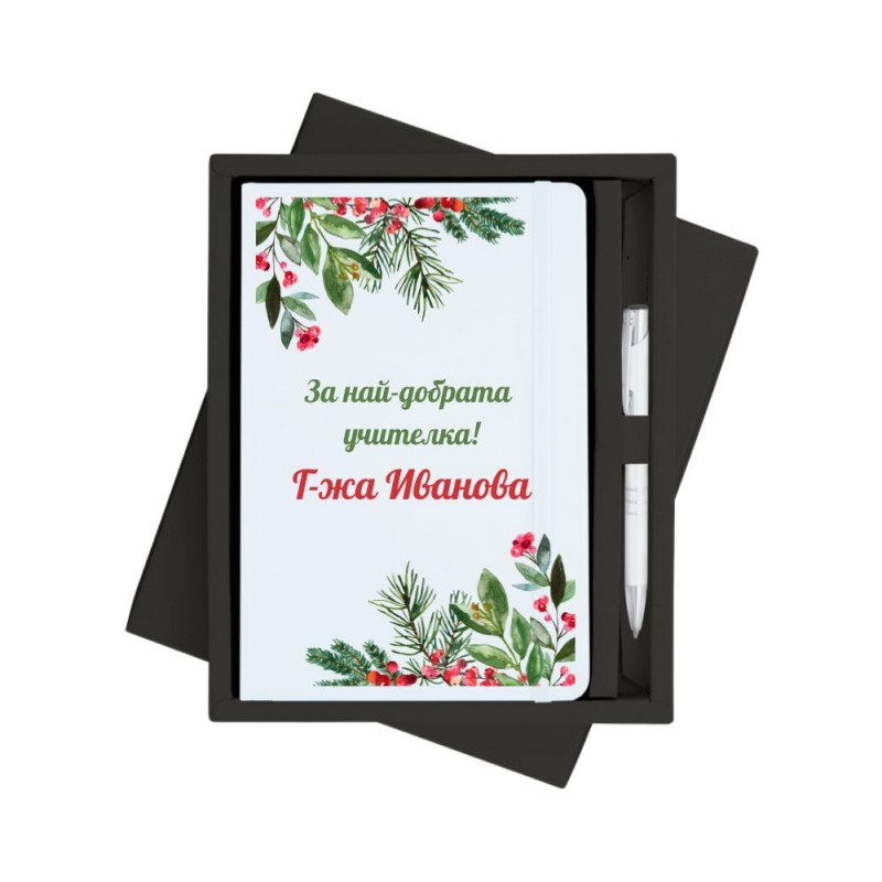 Персонализиран тефтер за учителка с метална химикалка в кутия